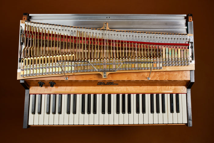Built for a close friend of Vintage Vibe master piano technician and designer Fred DiLeone. Birds eye maple and brushed ebony patina. Built with portability and cosmetics in mind.