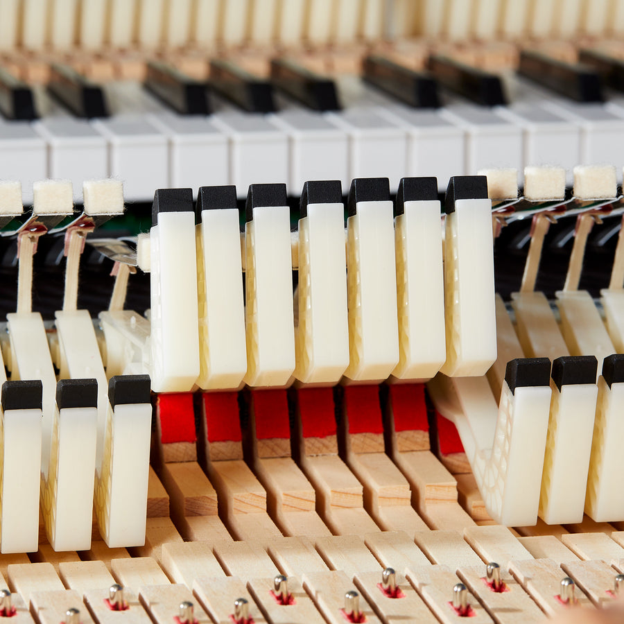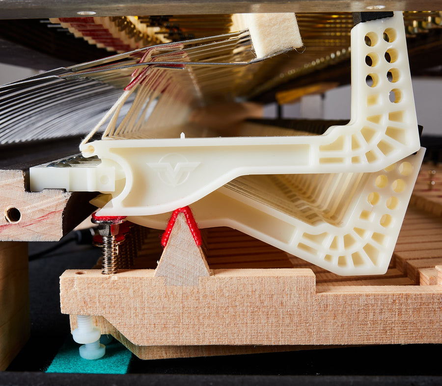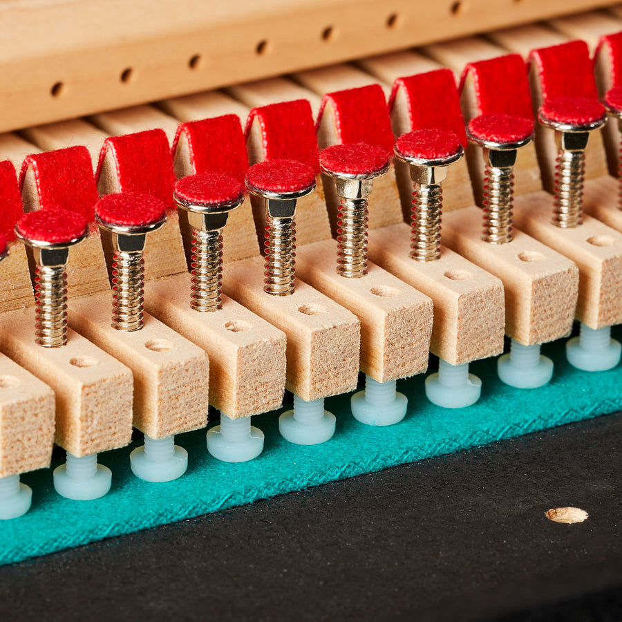 The next logical step was to incorporate adjustability into our piano. Fine adjustments not only allow us the ability to set up our action with a precision never before attainable but allows our instrument to be easily regulated throughout its life by the end-user or service technician. Whether factory set or customized, precision specifications can now be efficiently and properly dialed in at any time.