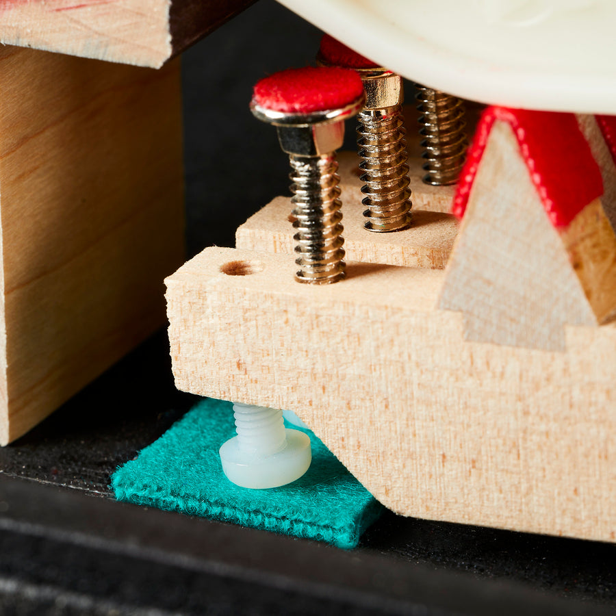Our patented design incorporates two separate capstan adjustments for manipulating the hammer throw and key dip, as well as stop lock and escapement, long overlooked and extremely important aspects of fine-tuning the Rhodes-style action.