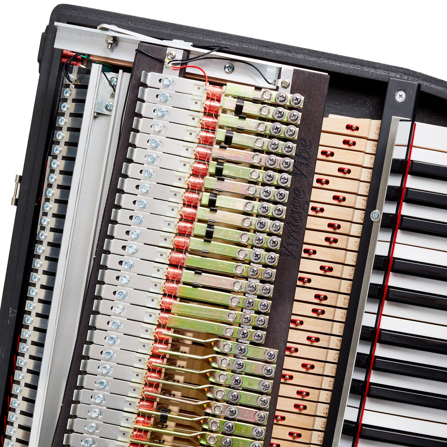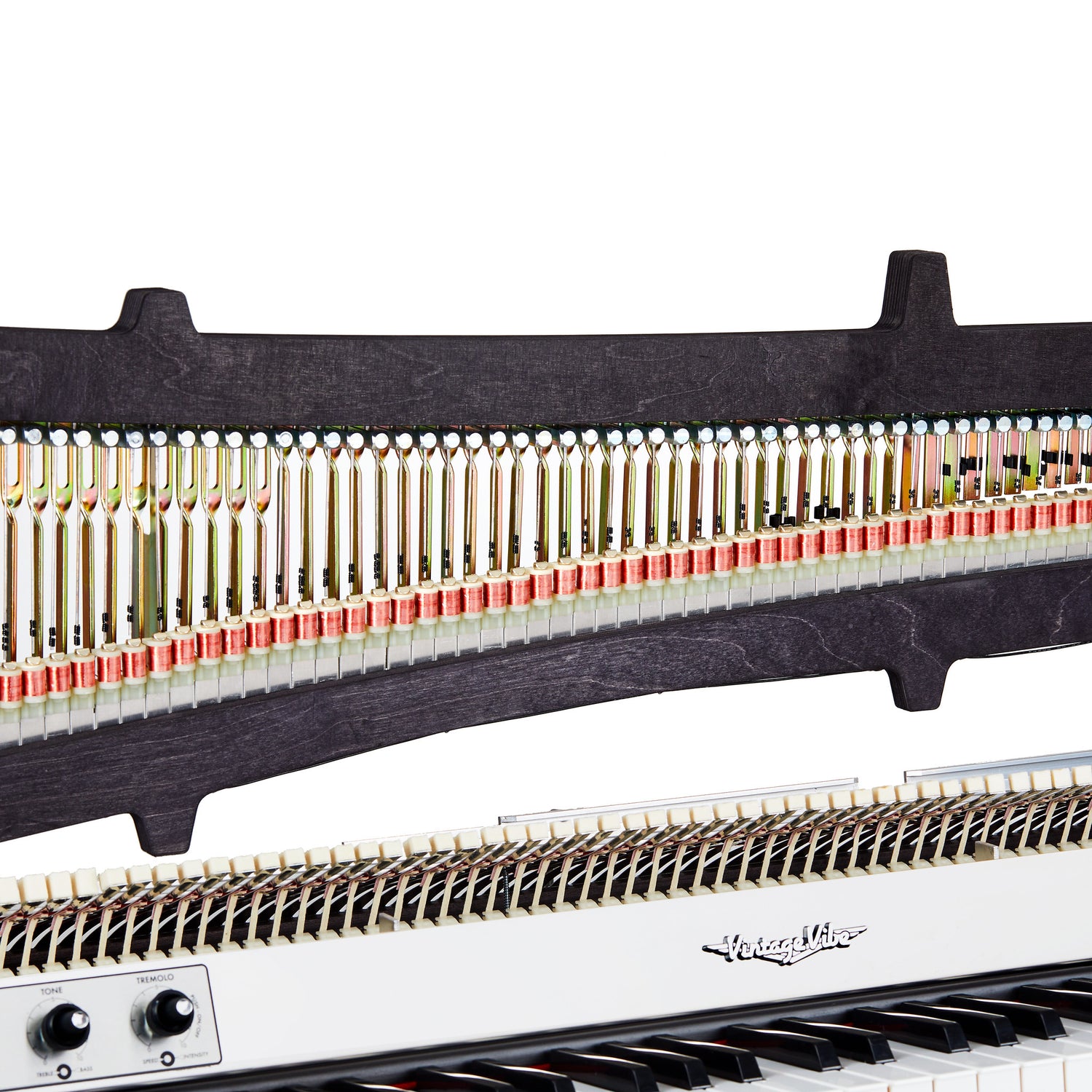 The Vintage Vibe piano, while heavy in Vibe, is light in weight. As a result, it is the most sought-after lightweight electro-mechanical piano available today. It is the player's choice at less than a pound per note.