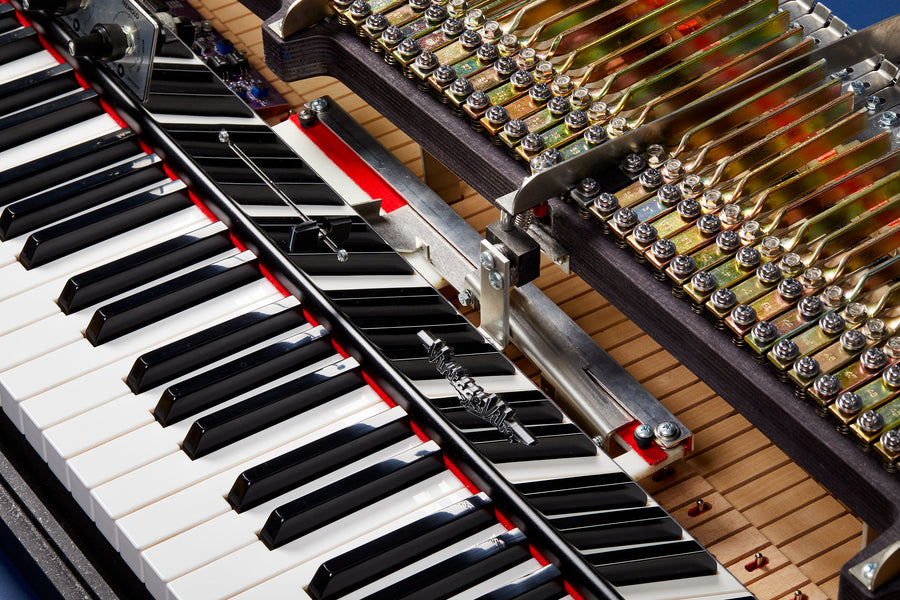 The answer is the Vintage Vibe Variable Voice Control. By globally repositioning the pickups as opposed to the tone generators, the complete sound spectrum is available to the musician instantly, and with infinite adjustability. Strike line, hammer blow distance, escapement, and damper lost motion all remain unaltered, preserving feel and response throughout the timbral spectrum.