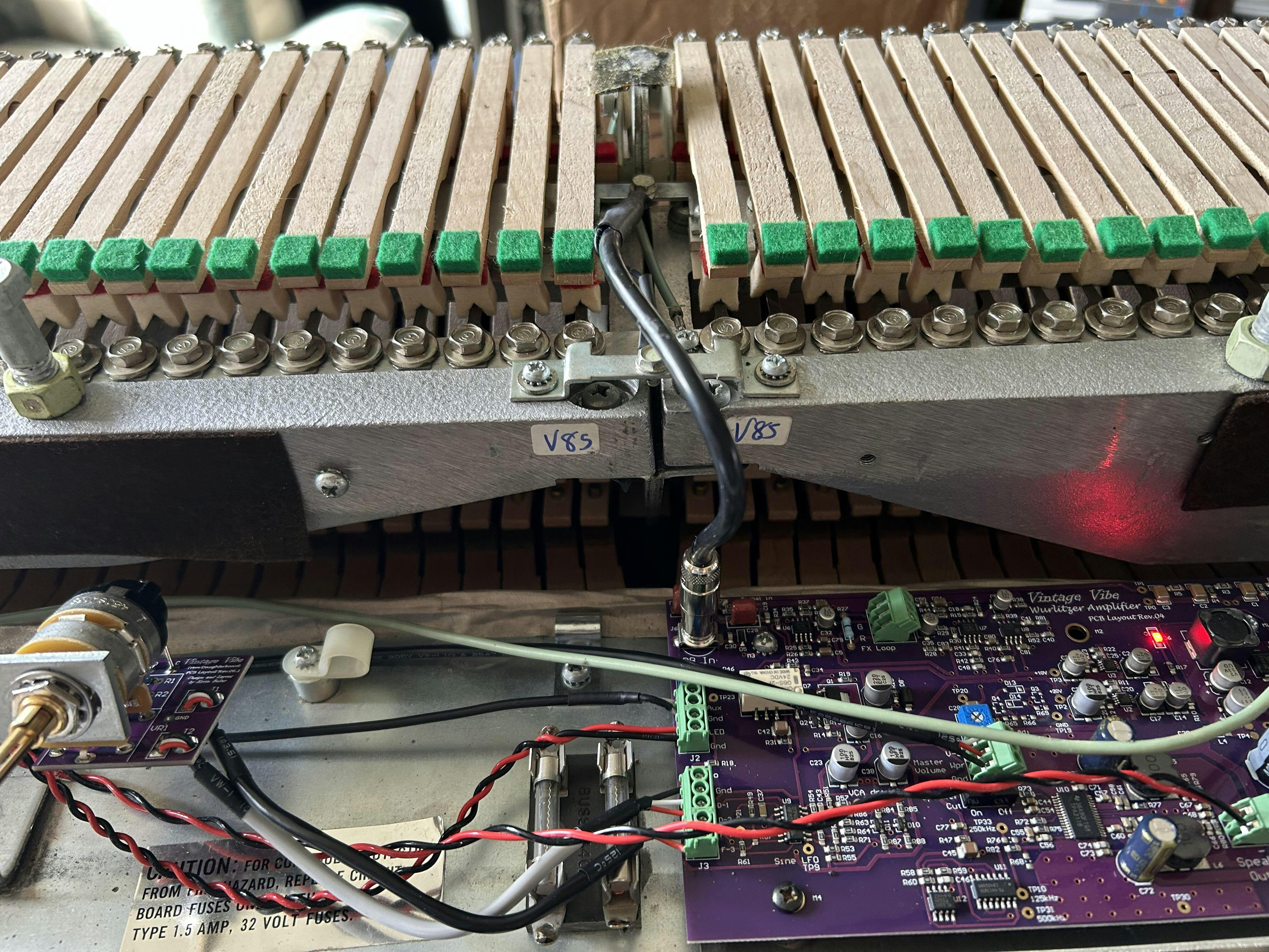 • Tremolo Speed Potentiometer: push-button switching between fully variable rate control and classic Wurlitzer rate mode.